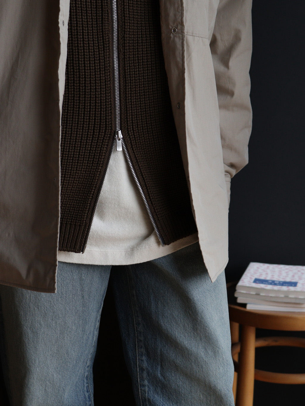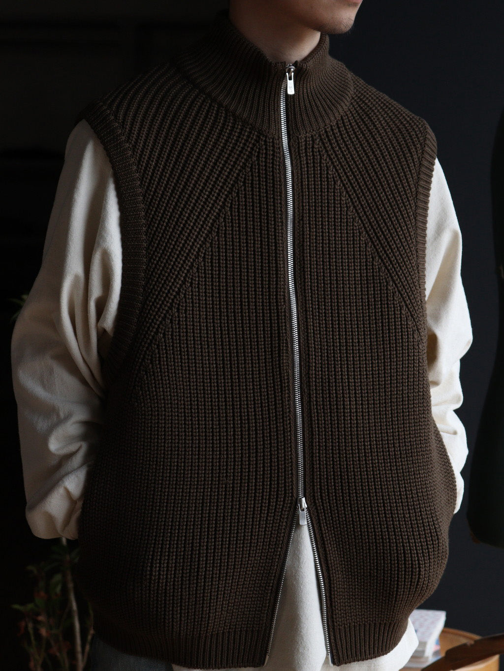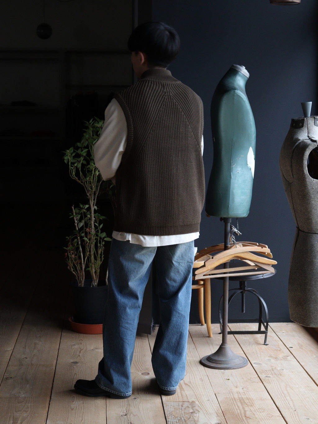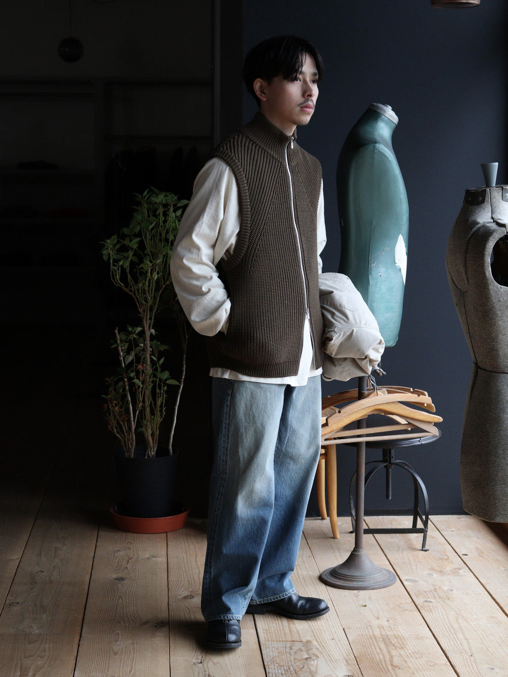 BATONER의 니트 조끼를 메인으로 솜이 들어간 두 가지 종류의 겉옷을 매치했습니다.