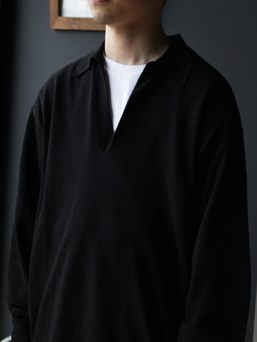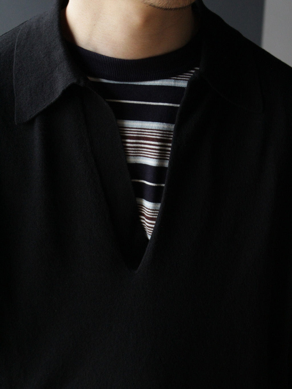 YLEVE의 코튼 니트 폴로. 투명감이 있어 햇빛을 가려주면서도 시원하다.
