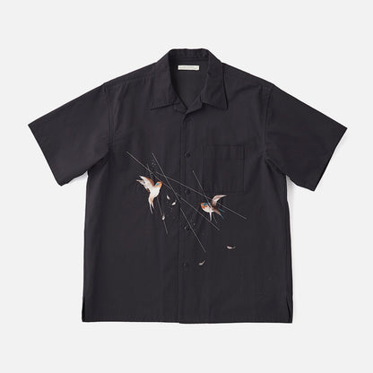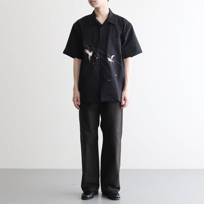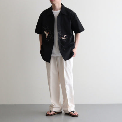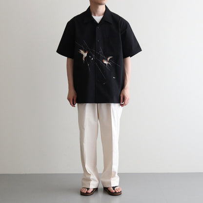 伝統的なテクニックに倣い、古き良き美しい日本の風景を写実的に柄起こしした刺繍図が他にはない雅な存在感を持つスーベニアシャツ。