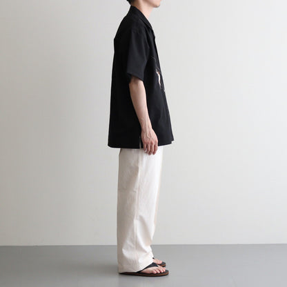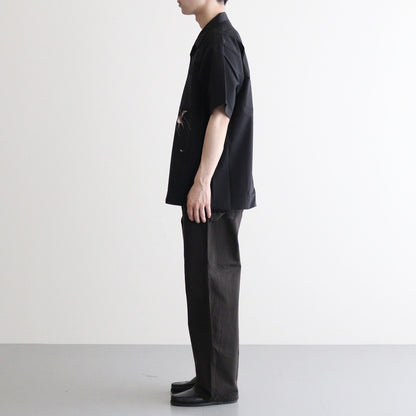 アーカイブピースで見かけるスカシャツ刺繍のクオリティ、世界観とは一線を画し、糸の太さに色数、グラデーション、陰影の付け方など限界まで設計したエレガントな表情が目を引きます。